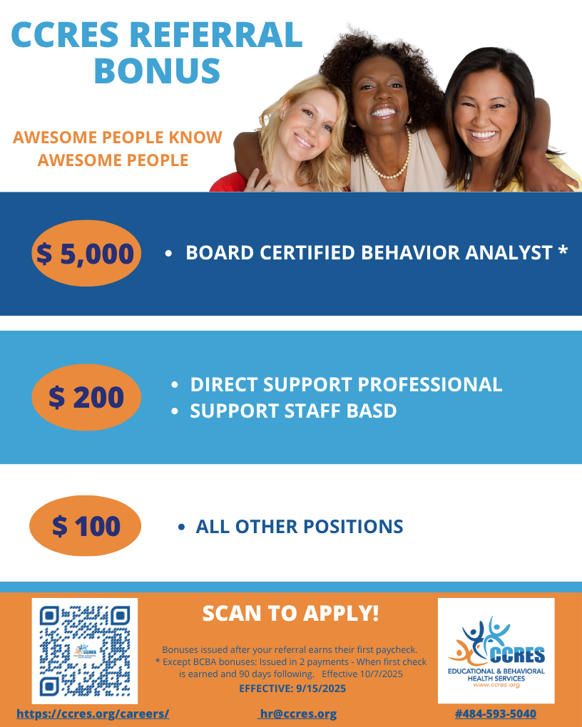 Through our partnership, CCRES provides behavioral health staffing for the CCIU via the Advanced Clinical Services (ACS) and Intensive Behavioral Health Services (IBHS) divisions. Do you have questions and don’t know who to call?